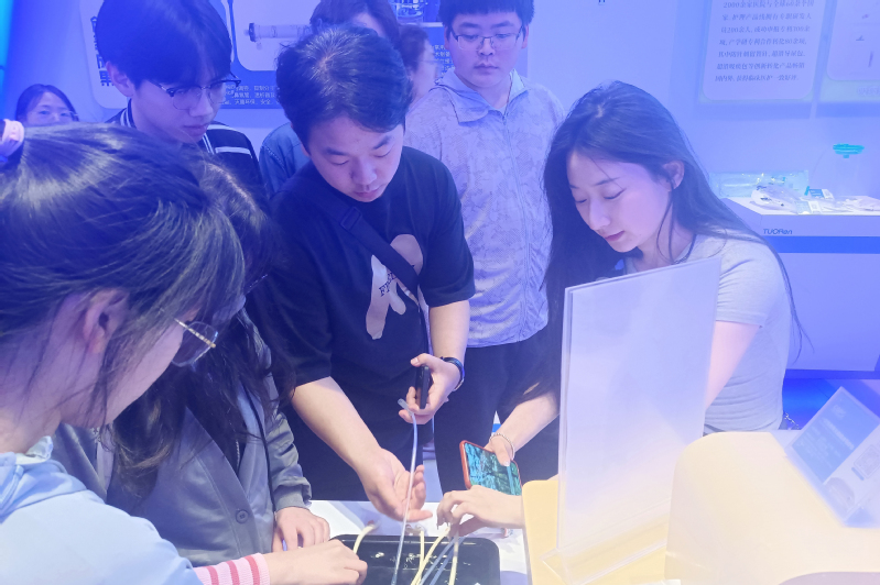 参观过程中,现场交流氛围十分火热,不仅开拓了学生们的眼界,也激发了学生们对进入到企业就业的兴趣。在讲解员的带领下,学生依次参观了医学博物馆、产品生产研发区。在医学博物馆学生了解中国卫生事业发展历史、医学历史、中国麻醉发展历史、医学工程发展历史等,全面感受医疗器械产业发展几十年来形成的繁荣景象,激励学生更加关注我国医疗器械产业发展。在产品生产研发区,通过了解医疗产品的研发过程和研发成果,大家感受到了生物医学领域与医疗科技的完美结合带来的巨大便利。同学们感悟了驼人集团的“改善医疗体验,呵护生命健康”的企业使命,“专注执着,砥砺前行”的驼人精神和“以客户为中心,以奋斗者为本”的价值观。