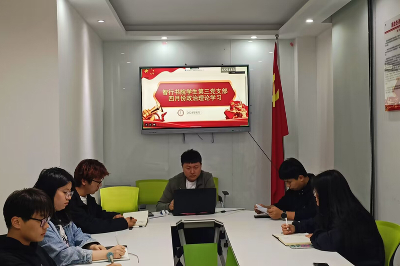 4月19日晚,智行书院学生第三党支部通过线上线下相结合的方式,在一号公寓党支部工作站开展了四月份政治理论学习,会议由党支部书记李浩楠主持,党支部全体成员参加。