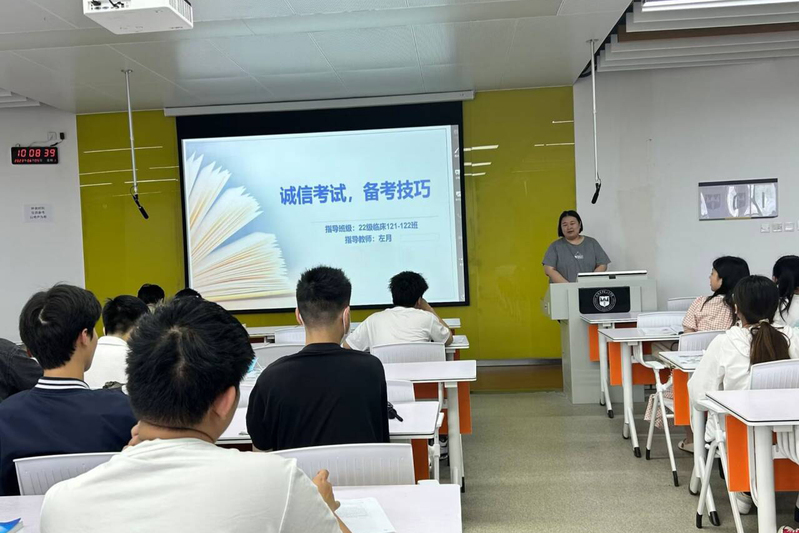 5月13日,基础医学院学业导师左月于弘学楼F102开展了以“诚信考试及备考指导”为主题的学业指导活动。2022级临床医学121、122班全体同学参加。