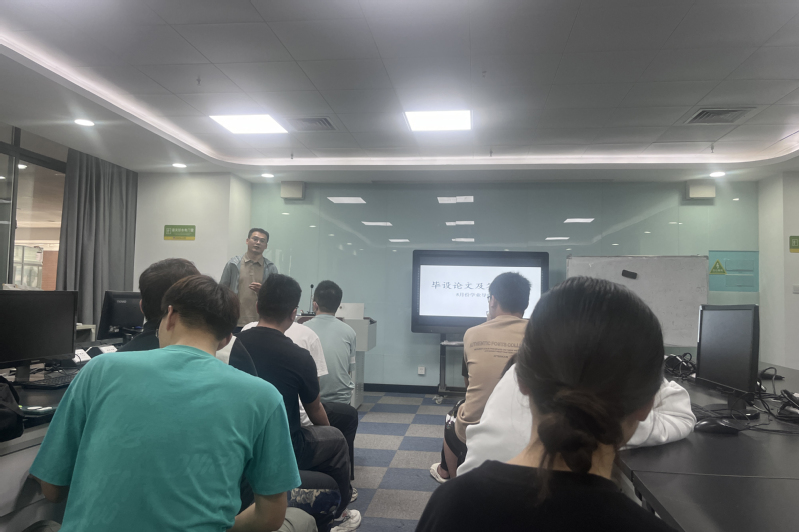 会议伊始,贾老师从摘要、关键词、目录、正文、结束语、参考文献等层面,给同学们详细阐述了毕业论文的格式框架及规范,并就论文攥写的核心部分进行了详细讲解。他指出,论文正文是整个毕业设计的中心环节,一定要做到语义精简、中心突出;此外,毕业设计的规范化对于论文的写作也是至关重要的,希望同学们认真复查和整理,确保论文的质量和水平。接着,贾老师结合学生往年的答辩情况,给同学讲述了毕业答辩的流程和注意事项,并针对答辩时的细节把控上给同学们提出了几点要求,即控制语速语调,适当口语化表达,娓娓道来、引人入胜;从概念到框架逐层递进,把研究过程和发现讲清楚、讲透彻、讲生动;做好预习,对论文大到主干、小到细枝末节都了如指掌;在答辩的过程中始终保持谦逊礼貌的态度,虚心接受意见,不断完善自我。