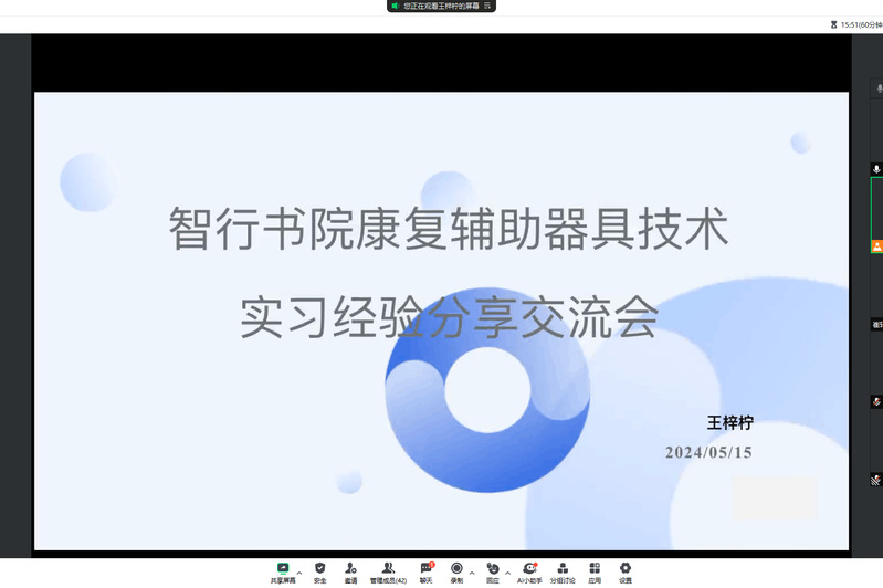 5月15日,2020级优秀实习生代表赵航航、金子灿为2021级生物医学工程、假肢矫形工程等专业学生开展实习经验分享会。