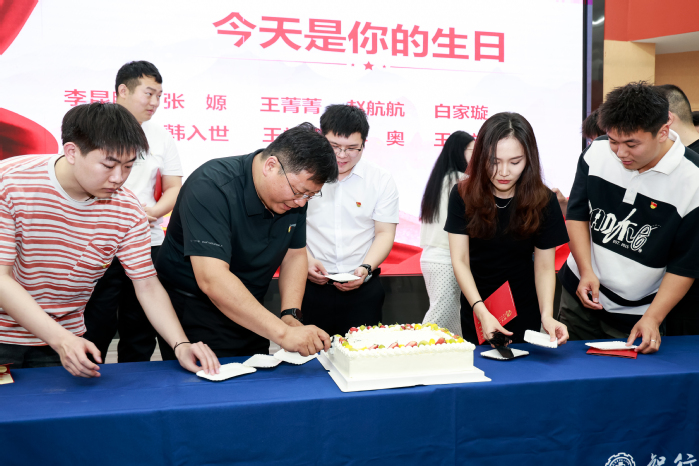 在党支部“学党纪党规 · 筑清廉防线”主题党日活动中,马帅为10位过“政治生日”的师生党员送上政治生日贺卡和蛋糕,并勉励全体师生党员要坚定理想信念,争做有理想、敢担当、能吃苦、肯奋斗的新时代好青年。全体与会师生一起紧握右拳,庄严肃立,重温入党誓词,最热忱的情感表达爱党爱国之情。党支部书记娄冰琼结合党支部组织体系建设、党员队伍培养、特色党建活动、存在问题及未来工作展望五个方面进行了支部工作汇报。