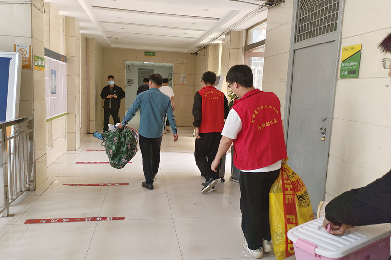 时光荏苒,满载而归。为让2019级临床医学专业实习结束的学长学姐们感受到书院的温暖,5月7日,智行书院青年志愿者联合会举办了“爱心搬运,情暖校园”志愿活动,志愿者们有序分工,为返回书院的学长学姐们搬运行李。大大小小的箱子,汗水沁透的衣衫。虽然天气炎热,但志愿者们依旧热情满满,让学长学姐们感受到书院和学弟学妹带来的满满的爱。