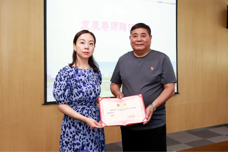 导师聘任仪式上,李琼代表学校对张荣锁的到来表示欢迎和感谢,就学校基本情况进行了介绍。她表示,张书记受聘为我校发展导师,在校园内讲述新时代劳模在党的培育下成长奋进的故事,不仅能够有效发挥劳动教育的综合育人功能,满足学生全面发展的需要,更为学校思政教育的高质量发展增添助力。随后,李琼宣读了发展导师聘任的决定并为张荣锁颁发聘书。