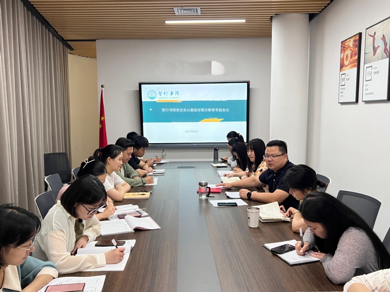 为推动党纪学习教育走深走实,引导全体党员学纪、明纪、知纪、守纪。6月19日下午,智行书院党总支于书院会议室召开以案促改警示教育专题会议。会议由党总支书记刘凯主持会议,智行书院全体教师党员参加。