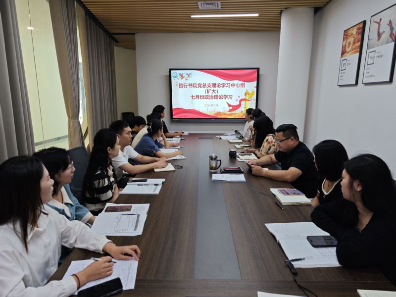 7月10日下午,智行书院党总支理论学习中心组(扩大)七月份政治理论学习于书院会议室召开,本次学习采用“集中学习+讨论分享”的方式进行,党总支理论学习中心组全体成员及各党支部书记参加,党总支书记刘凯主持会议。