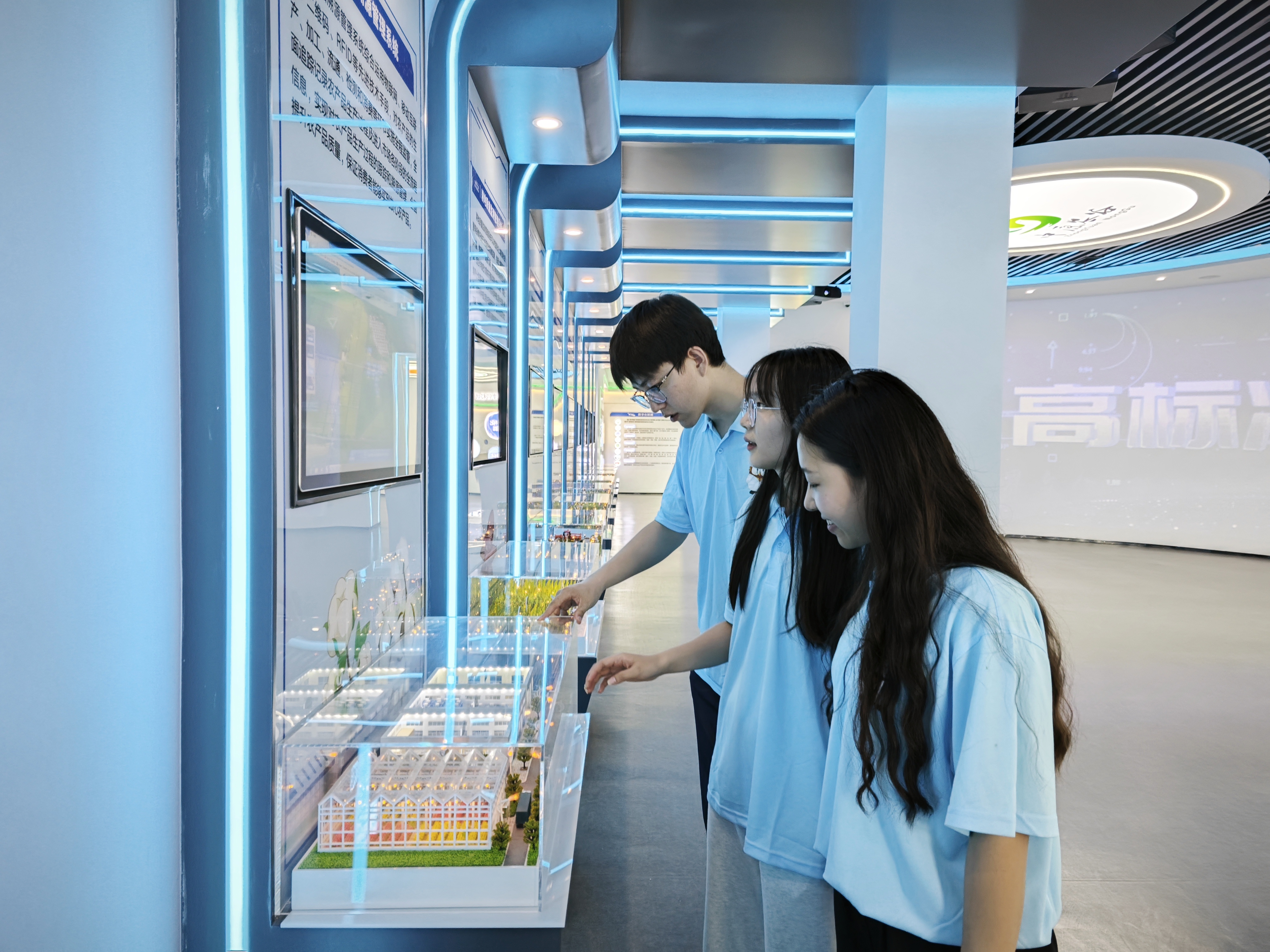 7月11日,团队成员在指导老师李莹莹带领下来到了平原示范区高标准农田(示范区)区域服务中心,实地观摩高标准农田建设情况,学习在“科技赋农”“绿色立农”等理念引领下不断提升粮食生产效率的先进经验及经典做法,同学们认真听讲,积极讨论。对我省智慧农业科技应用、农作物品种创新等情况有了深刻的认识,切实感受到科技创新给农业发展带来的蓬勃力量。当讲解员路老师说道:“现在农户坐在家里所有的数据在手机上都能看到,用手机就可以实现农田灌溉、施肥、打药。”团队成员冯翔不由得惊叹道:“原来真的可以实现躺着就能种田,科技太强大了,智慧农业太了不起了”!