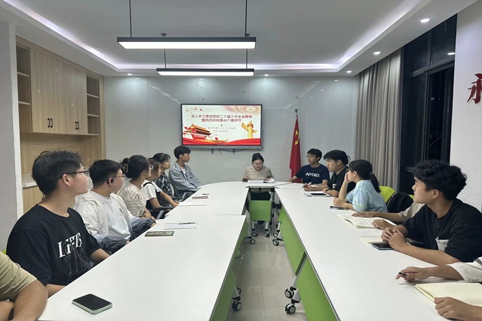 为深入学习贯彻党的二十届三中全会精神,弘扬尊师重教的社会风尚,同时强化党员廉洁自律意识,9月23日晚,智行书院第八、第九、第十一党支部于二号楼党支部工作站联合召开以“深入学习贯彻党的二十届三中全会精神暨热烈庆祝第40个教师节”为主题的党日活动,本次学习采用“集中学习+讨论分享”的方式进行,学生党支部全体成员及各党支部书记参加,学生第八支部书记娄冰琼主持会议。