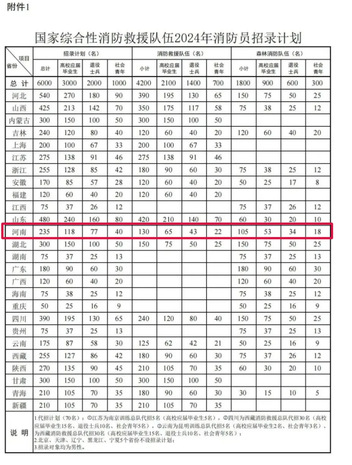附件1:国家综合性消防救援队伍2024年消防员招录计划