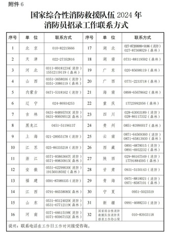 附件6:国家综合性消防救援队伍2024年消防员招录工作联系方式