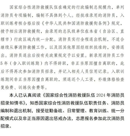 附件3:国家综合性消防救援队伍2024年消防员招录知情书