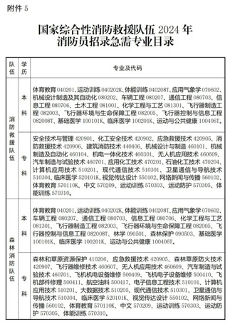 附件5:国家综合性消防救援队伍2024年消防员招录急需专业目录