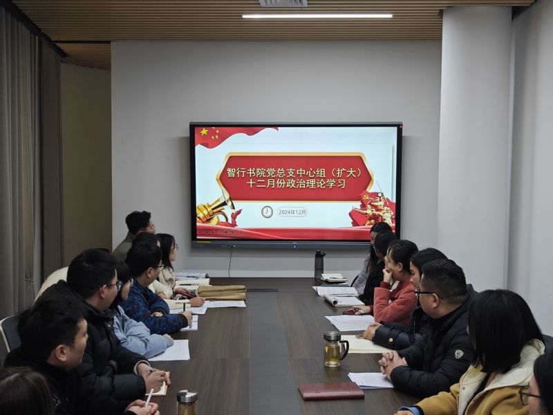 12月12日下午,智行书院党总支理论学习中心组(扩大)十二月份政治理论学习于书院会议室召开,本次学习采用“集中学习+讨论分享”的方式进行,党总支理论学习中心组全体成员及各党支部书记参加。会议由党总支书记刘凯主持。