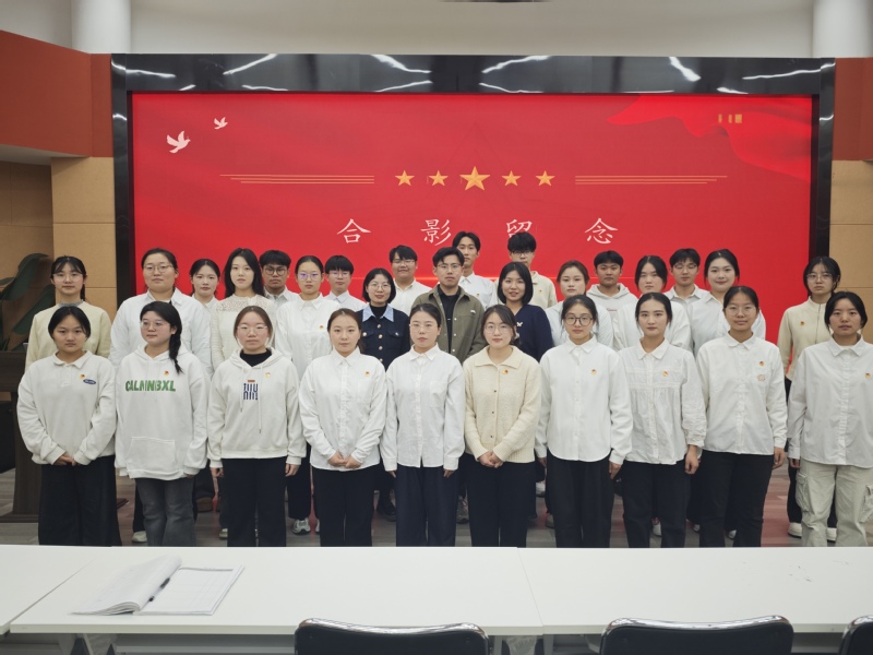 在经验分享环节,第四期优秀学员贾潆楠说到自身在“青马工程”中的学习历程,着重阐述“青马工程”对个人综合素质提升的巨大作用,讲述自己在实践活动中锻炼了组织协调能力和团队合作精神,从而实现了思想与行动的双重成长。随后,主持人宣读了第五期“青马工程”培训班学员名单。学员代表陈晓雨同学在发言中表达了对“青马工程”的热切期待和努力学习的坚定决心,表示将珍惜此次学习机会,严格要求自己,不断提升思想政治素质,立志成为优秀的青年马克思主义者。紧接着,王子涵为第五期青马班授旗。随后,全体与会师生合影留念。