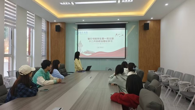 12月13日下午,智行书院学生第一党支部十二月份政治理论学习于新时代党员活动室召开,本次学习采用“集中学习+讨论分享”的方式进行,党支部全体成员及入党积极分子参加,党支部书记李莹莹主持会议。