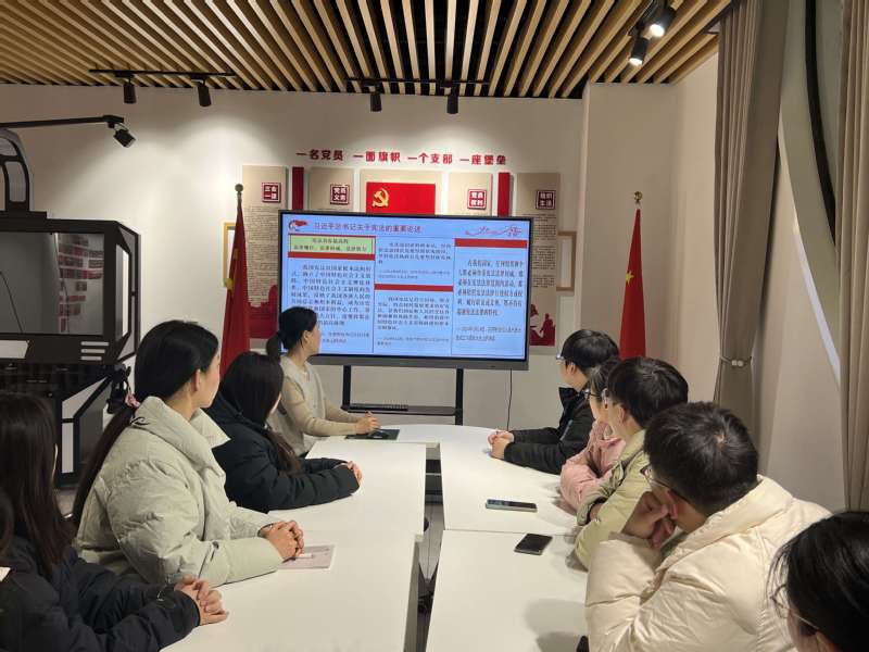首先,各党支部通报了本月党支部党费缴纳情况。接着,董婷婷带领大家进行了第一议题学习,深入学习了习近平总书记关于宪法的重要论述。她强调:“新时代共产党员,要深刻认识到宪法的重要性,不断提高自身的法律素养和法治观念,将法治精神转化为实际行动,积极投身于校园普法教育与法治建设的伟大实践中,争做普法宣传的先锋队与法治进步的排头兵。”