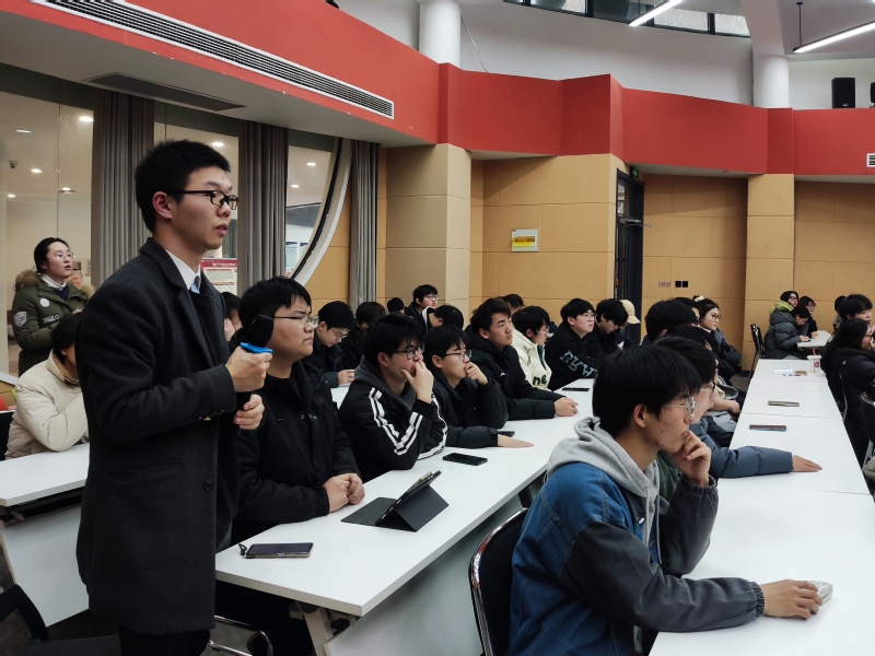 在互动环节中,教授们凭借深厚的学术造诣和丰富的指导经验耐心解答学生问题。从项目选题的精准切入,到研究方法的科学运用;从团队协作的高效构建,再到竞赛现场的应对技巧,教授们深入浅出的讲解让学生们的疑惑一一消散,为同学们在即将开启的科创竞赛征程中指明了方向。