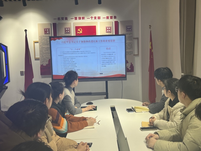 首先,董婷婷带领大家进行第一议题学习,深入学习习近平总书记在《求是》杂志发表的《健全全面从严治党体系》重要文章等内容,杨蕊领学习近平总书记在二〇二五年春节团拜会上的讲话及2025年河南省政府工作报告全文,高雯雯结合新时代统战工作的根本指针内容讲授专题党课。接着,各党支部通报了本月党支部党费缴纳情况。董婷婷表示:“全面从严治党不仅是党的自我革命的伟大实践,也是党始终保持先进性和纯洁性的关键所在。青年党员当严于律己,设定更高标准,以身作则,争当表率,引领前行之路。”