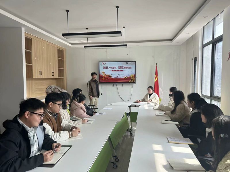 随后,学生党员牛潇为大家带来了一堂生动的专题党课,主题为“端正入党动机 坚定理想信念”。他从入党动机的审视与矫正、接受党组织的培养与考察、争做合格共产党员等方面进行了深入浅出的讲解。最后,全体与会人员围绕此次主题党日活动的内容进行了深入的讨论和交流。大家纷纷表示,通过此次活动,不仅加深了对党的理论和政策的认识和理解,也增强了自身的党性修养和责任感。在今后的学习和工作中,将继续保持高昂的斗志和饱满的热情,为党的事业贡献自己的力量。