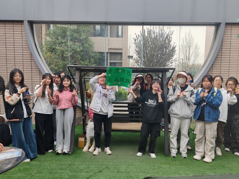当步入实际操作的“实战环节”,花园内立即洋溢着愉悦的笑声与交谈声。参与者紧握着银针,好似面临大敌,线头屡次从针眼中滑脱,引得旁座的同伴不禁发出笑声并伸出援手;同学们虽手足无措却依旧享受其中,那半成品的歪斜针脚,反而成为了大学生活中一段独特的记忆。随着香料缓缓填入布袋,花草的淡雅香气在四周弥漫,仿佛整个春天都被精心缝制进了这小巧的香囊之内。