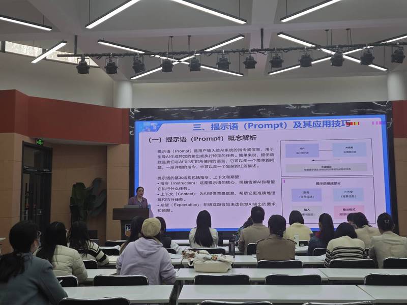 讲座结束后,参训教师纷纷表示受益匪浅。学业导师王卫华表示:“这次培训让我对AI在教学中的应用有了更清晰的认识,尤其是Prompt技巧的讲解非常实用,我计划在后续的课程设计中尝试运用。”青年教师李莹莹也感慨道:“AI不仅是一种工具,更是一种教学思维的革新,未来我们需要不断探索人机协同的最佳模式。”