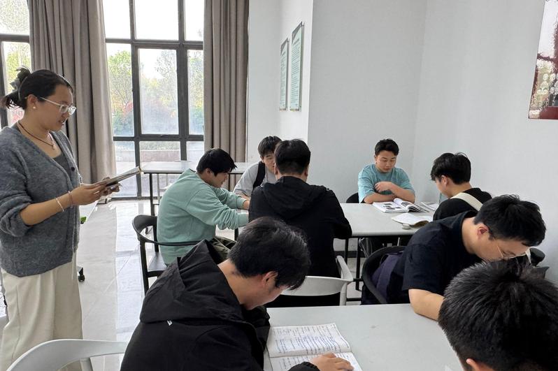 踏入自习室,便能感受到那股扑面而来的学习热潮。同学们或埋首于单词书间,口中念念有词,专注默记每一个单词的发音、拼写与含义,力求在词汇的海洋中打下坚实的基础。偶有轻声交流,也是同学们针对疑难问题展开的深入探讨,思维的火花在交流中不断碰撞。