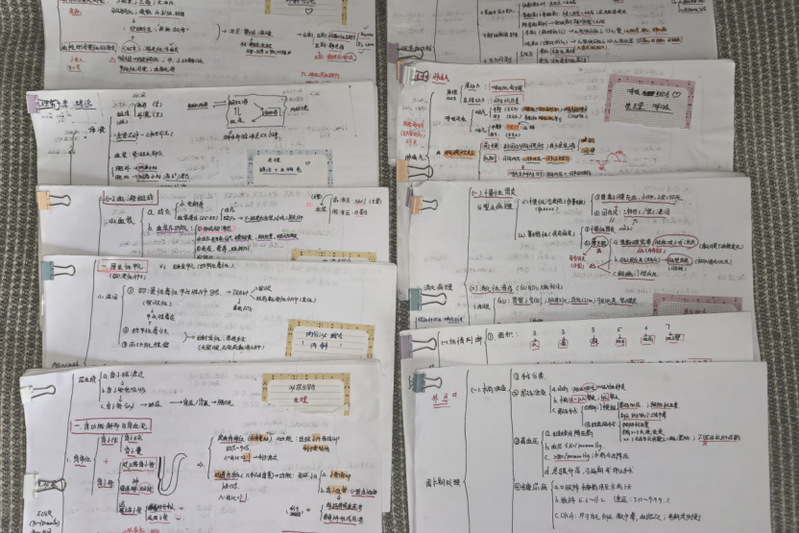 西医综合只要你跟紧小亮或者天天老师,认真学习每一个相关的知识点,你的西综成绩都不会很差。我认为学习西综最重要的学习方法就是重复,最重要的学习成果就是记住。“重复、记住”这四个字看似容易,做起来却相当困难。在学习每一章过后都要进行相应的练习,巩固知识点,不要为了正确率去练习,没有意义。一般到了九月中会结束一轮复习,接下来就要开始最艰难的重复环节,我当时是给自己定的计划一个月过一轮,这样到了十二月就会过完四轮,但是即便如此还是会遗忘很多,所以我建议大家按照自己习惯的方式进行重复,比如我习惯手眼嘴一起进行记忆,所以我第二轮就边按照自己的思维模式抄写小亮老师的讲义边背诵把五门课过一遍,最重要的一定是重复,把不清楚的一定要弄明白,不能一知半解。