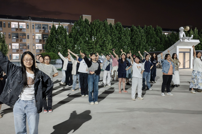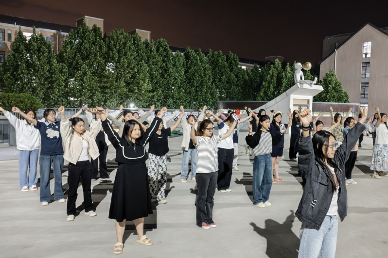 看!那边有人在教舞蹈基础动作!随着围观人群的惊呼,舞蹈队成员自发组成教学小组,将专业课堂搬至星空下。舞蹈队队长王钟钰同学边示范边解说:这个wave要像春水流过身体,瞬间引发跟学热潮。现场更涌现出多个野生教学点,擅长民族舞的同学即兴开设云手小课堂,健身达人组团演示燃脂舞步,知识的流动与肢体的舒展在此完美交融。