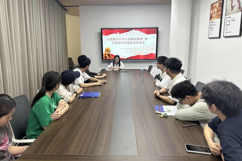 为深入贯彻落实中央八项规定精神,进一步强化党员纪律意识与作风建设,4月28日中午,智行书院学生第八党支部于书院会议室成功开展了“全面落实中央八项规定精神 进一步推进作风建设走深走实”主题党日活动暨政治理论学习。此次活动由党支部书记娄冰琼主持,党支部全体成员参加。