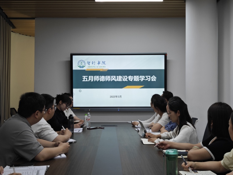 为进一步加强辅导员队伍建设,提升辅导员师德师风水平,5月16日下午,智行书院于会议室召开5月“师德师风建设”专题学习会,会议由党总支书记刘凯主持,书院全体辅导员参加。
