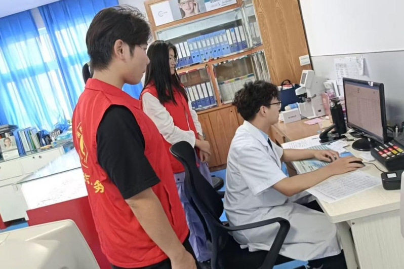 诊室实践中,志愿者以协作之姿融入诊疗流程。他们有序辅助医护整理病历、传递检查单据。在眼科诊室,跟随学习基础检查流程,记录患者症状信息。于医疗团队而言,志愿者高效的事务性协助,缓解工作负担,其对患者情绪的正向安抚,亦优化诊疗氛围;于自身成长而言,近距离观察医护专业诊疗过程,将书本知识与实际场景融合,深化对医疗工作的认知,在实践中实现技能与认知的双重进阶,成为连接理论与实操的青春桥梁。