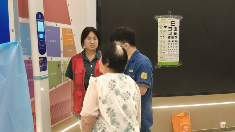 科普结束后,团队在社区工作人员的协同下,参与了社区为老年人安排的体检活动。于血压、血糖检测区,队员们认真为老人测量并详细记录数据,建立健康档案,对于那些检测指标出现异常的老人,队员们耐心地向他们解释需要注意的事项,并且协助社区工作人员圆满完成了老年人的体检项目。