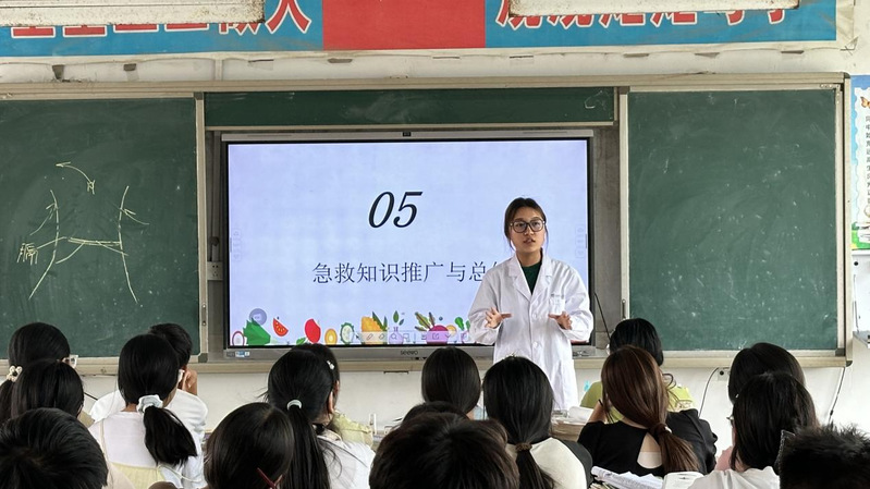 实践团首站走进郸城县虎岗乡第二初级中学,开展“急救知识进校园”专项宣讲活动。活动聚焦校园内外常见的中暑、溺水、外伤等意外伤害场景,团队以专业视角,通过理论剖析、模拟实操演示等多元形式,为师生系统讲解心肺复苏、创伤包扎、海姆立克急救法等关键急救流程与核心注意事项。同时,结合实际场景设计趣味互动问答,配套小礼品激励,驱动同学们主动探索、深度掌握急救要领,助力构建校园安全防护体系。