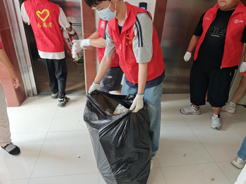 活动伊始,团队成员便与社区工作人员并肩行动,一同深入楼栋开展全面排查。过程中,废旧家具随意堆放、零散瓶罐散落角落、墙缝里积满蛛网、地面上油渍斑斑等各类杂物乱象被逐一发现。团队成员与社区工作人员迅速行动,分工协作清理杂物,经过一番细致清理,原本杂乱的楼道变得干净整洁、畅通无阻。这不仅改善了居民的居住环境,更消除了潜在的安全风险,让楼道真正成为守护居民安全的“防护屏障”。