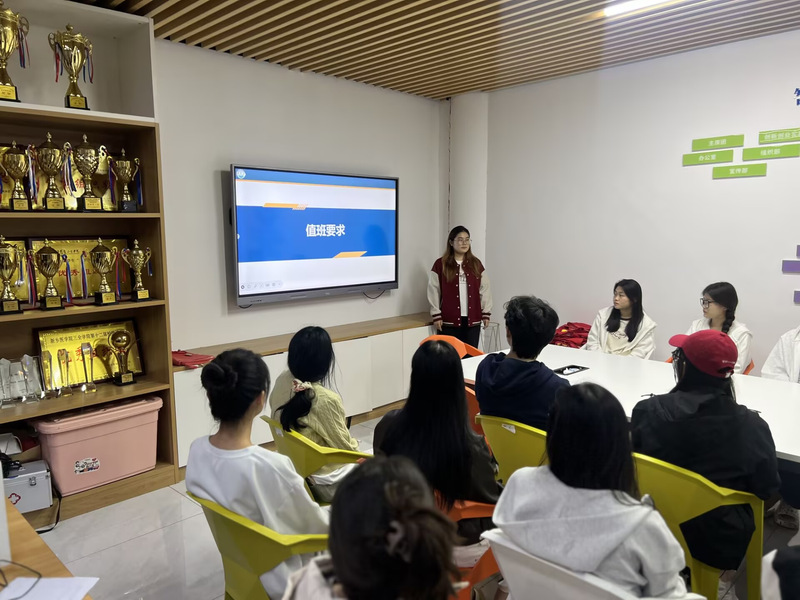 值班行为规范是本次培训的重点内容之一。培训明确强调了值班期间的多项细节要求,包括严禁使用手机进行娱乐活动、时刻保持值班环境整洁有序、主动向来访师生问好、全程践行微笑服务等。此次培训的成效立竿见影:一方面,值班学生的责任担当意识显著增强,服务理念从“被动响应” 向 “主动服务” 转变;另一方面,也为书院日常管理的高效运行奠定了坚实基础,有效减少了因业务不熟悉、流程不清晰导致的工作延误问题。