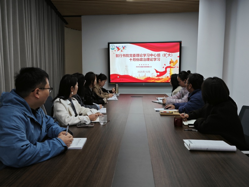 10月22日上午,智行书院党委理论学习中心组(扩大)十月份政治理论学习于书院会议室举行。本次学习采用“集中学习+讨论分享”的方式进行,书院党委理论学习中心组全体成员及各党支部书记参加。会议由智行书院党委书记李印省主持。