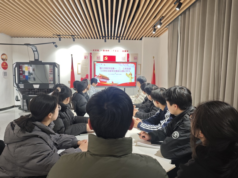 为深入学习贯彻党的二十届四中全会精神,深刻把握新时代推进国家治理体系和治理能力现代化的重大意义,11月18日,智行书院学生第一、第二、第三党支部联合开展“深入学习贯彻党的二十届四中全会精神”主题党日暨政治理论学习活动,活动由学生第二党支部书记闫阁主持,各党支部成员参加。