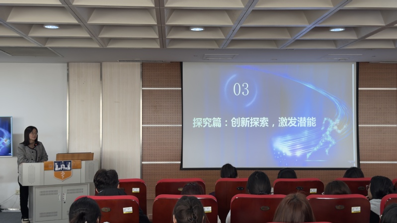 吴贝贝首先强调科研团队的组建要诀:分工明确,彼此包容,氛围极佳。她提倡跨学院、跨专业组队以发挥团队最大优势。同时,团队成员要具有前瞻性的发展视野和基础理论知识、熟练掌握实验数据统计、绘图、PPT、WORD等基本技能。其次,在选题部分,吴老师强调要遵循选题的基本原则,学会借助查询网站及公众号来挖掘热点词汇。为此,她提供老龄化服务、乡村振兴、公益项目、非遗、人工智能、环保等一些参考方向。接着,在探讨环节,吴老师围绕科创比赛,从流程到竞赛的类别、级别展开了详尽的阐述。她着重指出,不同级别的赛事在参赛要求、评审重点等方面存在显著差异。这极大地助力同学们清晰了解科创竞赛的基本情况,加深对竞赛规则和流程的认知。最后,在实践篇中,吴老师针对项目书撰写和PPT制作进行讲解。她着重指出,PPT的封面和尾页应当设计得时尚大气、清新明快且富有深度。同时,她提醒同学们要为各个流程的答辩做好充分准备,尽情享受整个科研过程,秉持细心、耐心与恒心。
