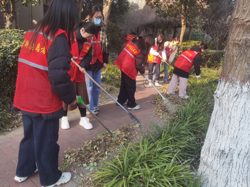 上午九点,一抹抹“志愿红”点亮了社区庭院。同学们分组协作,手持扫帚、垃圾夹和抹布等工具,深入各个角落展开清洁:清扫路面落叶、捡拾绿化带隐藏垃圾;擦拭宣传栏、公共座椅,清除墙面小广告;向居民发放垃圾分类指南,宣传文明健康生活方式。在志愿者们的感染下,不少居民也主动加入劳动行列。“看着孩子们干得这么认真,我们老住户也坐不住了!”居民张阿姨笑着说。经过两小时的共同努力,社区庭院面貌焕然一新———道路整洁、绿意盎然、公共设施光亮如新。汗水浸润冬日土壤,笑容温暖邻里心间。
