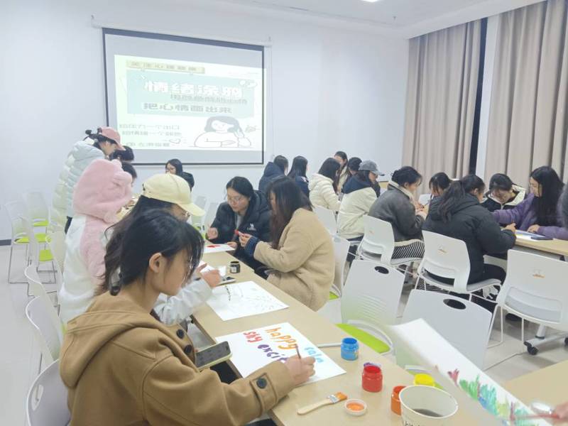 12月18日,“情绪涂鸦·把心情画出来”体验式心理活动在智行书院智苑多功能室举行。活动面向全体同学开放,无需任何绘画基础,旨在通过色彩与创意,为期末压力寻找一个温柔出口。