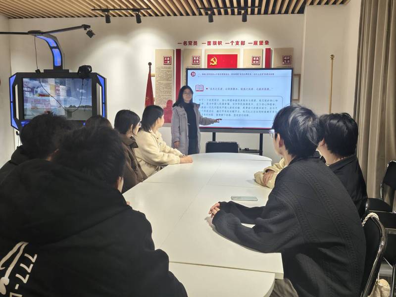 党课由学生第二党支部书记闫阁主讲,她紧紧围绕“铸魂·明势·践行”这一主线,层层展开讲述。她首先带领大家从“红船精神”与雷锋、焦裕禄等先进事迹中汲取力量,引导学生党员在回溯初心中筑牢信仰根基,深入思考“为何入党、如何成长”,激励大家将个人理想主动融入国家发展大局。接着,她将视野投向时代方位,系统阐释了高质量发展、科技创新、乡村振兴等国家战略对青年党员提出的新要求,强调既要扎实学好专业知识,也要积极投身“挑战杯”“三下乡”等社会实践,在知行合一中练就过硬本领。最后,她落脚于日常践行,通过身边生动案例,具体阐述了如何在学业互助、网络发声、纪律遵守中体现党员担当,号召全体学生党员以实际行动争做起而行之的奋斗者,真正把初心使命书写在青春答卷上。