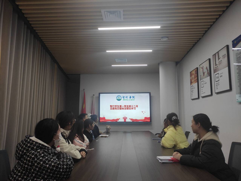 12月16日下午,智行书院学生第一党支部以“打好收官战 谋划十五五”为主题组织开展十二月份主题党日暨政治理论学习活动。活动由学生第一党支部书记冯婷婷主持,党支部全体成员参加。