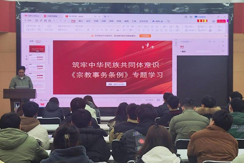 班会重点围绕《宗教事务条例》中宗教团体、宗教活动及法律责任等章节进行解读,并结合案例分析,生动阐释非法宗教活动的危害。辅导员在班会中教育引导学生要坚定理想信念,理性看待宗教,自觉远离非法宗教活动,不参与任何违反宗教政策法规的行为。