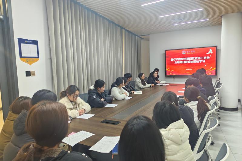 春潮涌动启新程,奋楫担当正当时。为持续强化党员政治素养,引导党支部成员树立正确政绩观、厚植担当精神,3月12日晚,智行书院学生第四党支部在书院会议室开展三月份主题党日活动暨政治理论学习。活动由党支部书记董婷婷主持,党支部全体成员参加。